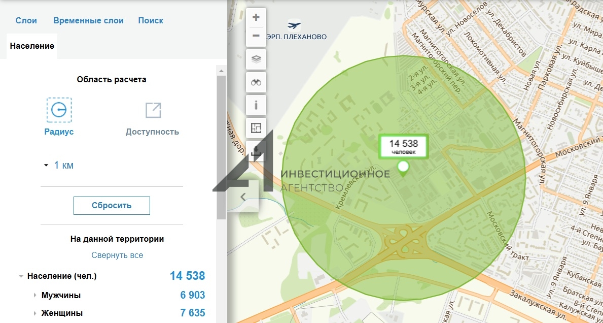- район города с высокой плотностью населения (более 14 500 человек в радиусе 1 км);