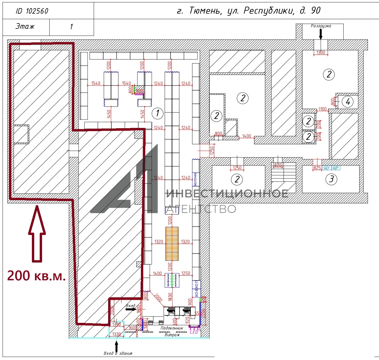 Аренда Торгового помещения в центре города, 200 кв.м.