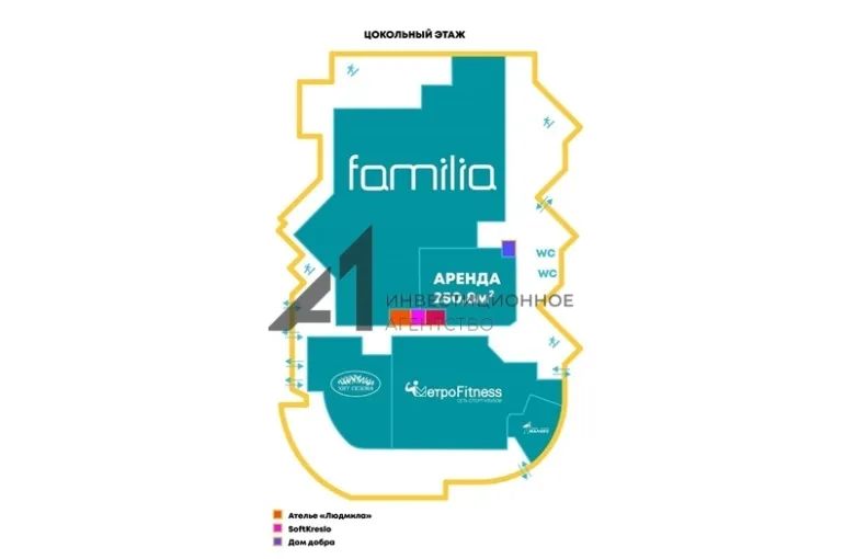 - торговый центр площадью 13140 кв.м. расположен на первой линии в развитом районе (Дом обороны);